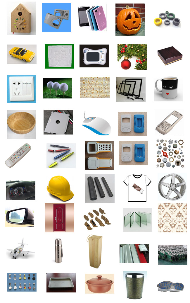 相機鏡頭、筆記本外殼、音響外殼喇叭、收音機、電視機、遙控器、插座、LED手電筒、DVD、鼠標(biāo)、鍵盤、耳機、燈具等;
