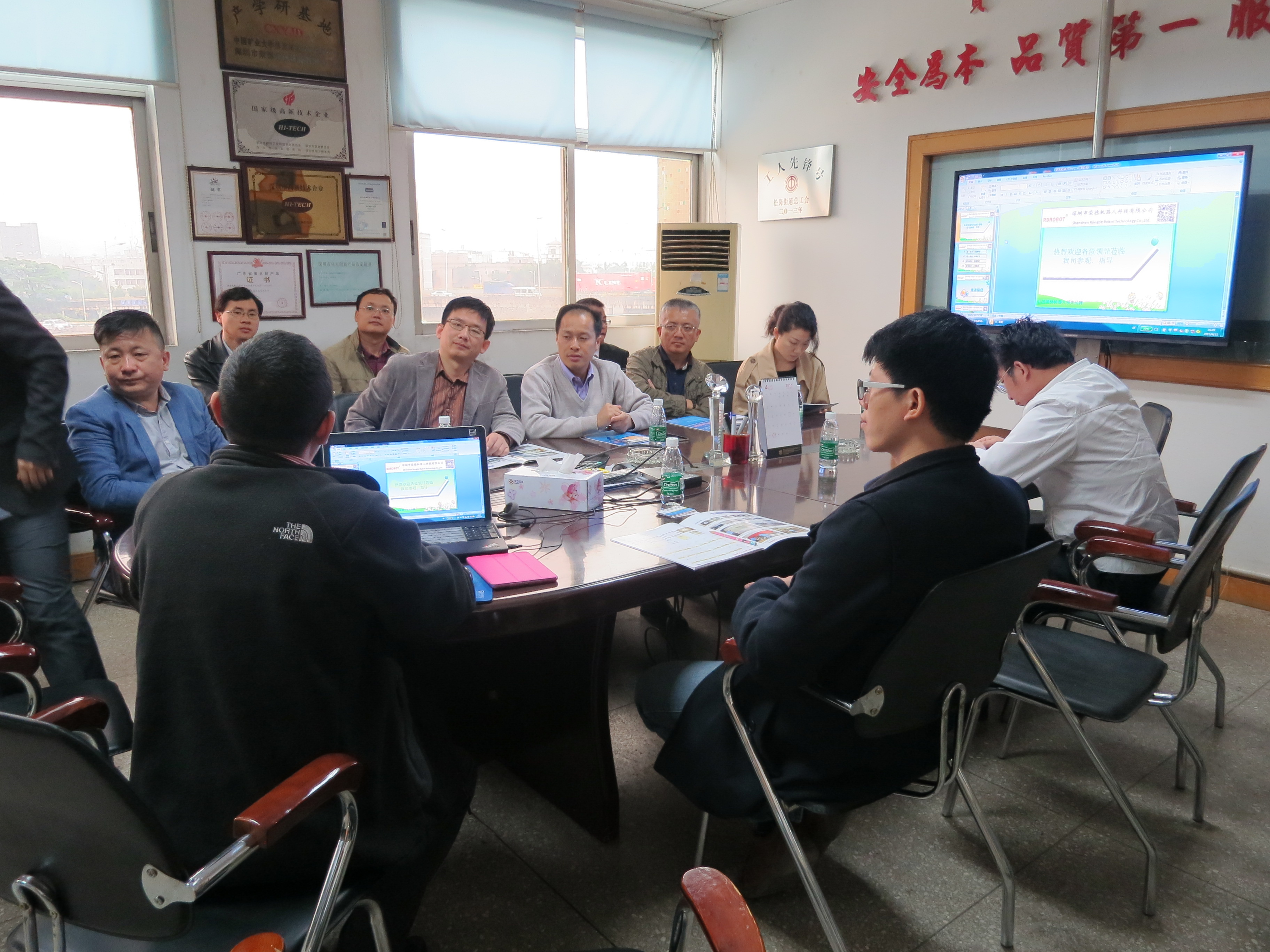 4月11日下午,中國(guó)礦業(yè)大學(xué)校友團(tuán)20余位,走進(jìn)了榮德機(jī)器人參觀考察,榮德的總經(jīng)理朱軒全程陪同,并進(jìn)行座談會(huì)的交流以及參觀榮德機(jī)器人的生產(chǎn)車間和噴涂實(shí)驗(yàn)室。