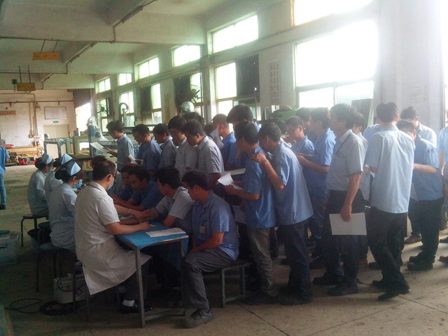 近日公司組織了全體員工的年度體檢活動(dòng),把關(guān)愛員工身體健康的措施進(jìn)一步落實(shí)。醫(yī)院體檢車直接開到公司大院內(nèi)對(duì)全體員工進(jìn)行體檢。當(dāng)員工井然有序地排隊(duì)抽血、拍片、查血壓等項(xiàng)目時(shí),也深深體會(huì)到公司對(duì)他們的呵護(hù)。相信榮德公司的全體伙伴能夠珍惜這份工作,在工作當(dāng)中努力付出,為客戶提供高品質(zhì)、高性價(jià)比的噴涂機(jī)器人、自動(dòng)化生產(chǎn)線,最大限度地達(dá)到客戶滿意。