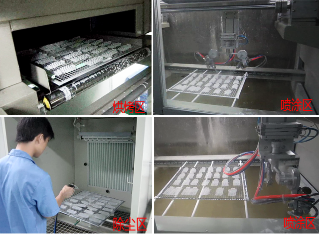 手機(jī)硅膠按鍵自動(dòng)噴漆線在線噴涂,效率高,產(chǎn)量大;噴涂與烘烤一體化,省人力;噴槍參數(shù)數(shù)字化管理,免噴涂師傅;噴涂區(qū)域無(wú)塵級(jí)別可達(dá)萬(wàn)級(jí),產(chǎn)品合格率高,品質(zhì)穩(wěn)定。