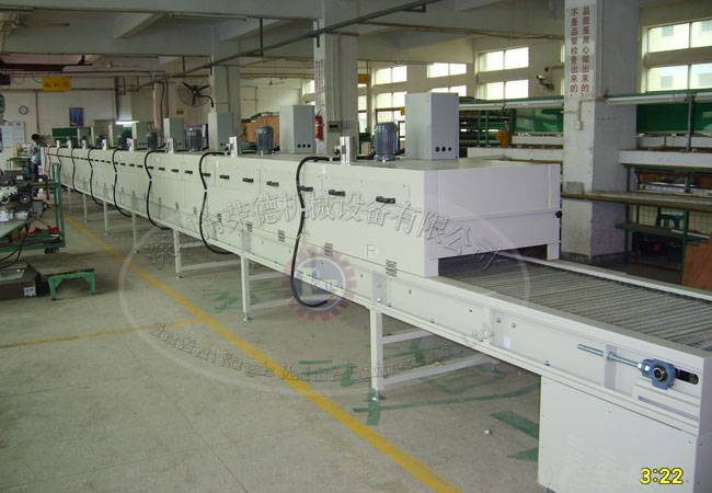 上輸送鏈—預(yù)熱除濕—靜電除塵—底漆—流平—烘干—冷卻—下件(非標(biāo)定制)